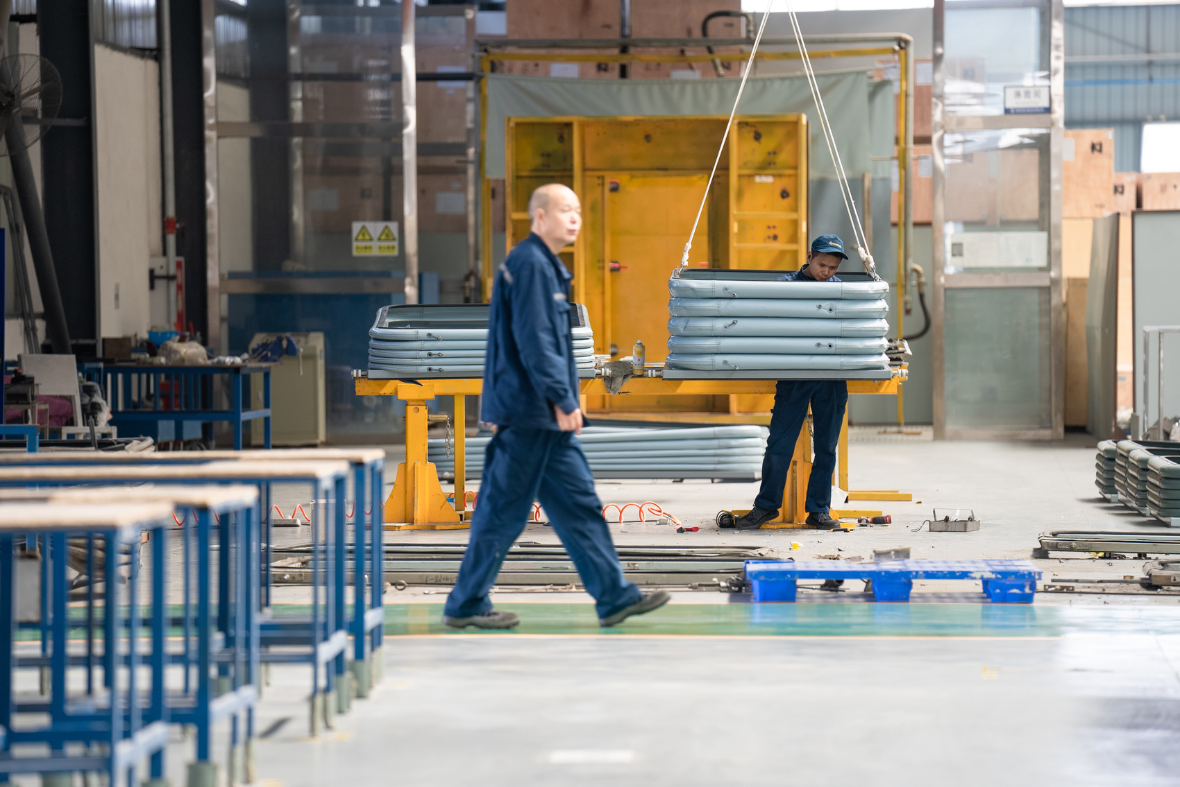 從中車成都公司出發(fā),沿著石木路走10多分鐘,便拐進了型材供應商成都金越交通設備有限公司(以下簡稱“金越公司”)。剛進工廠,記者就發(fā)現(xiàn)了不同之處——公司廠房的大門非常寬大。