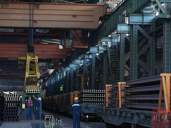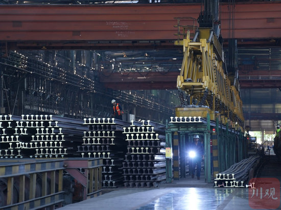 東南亞首條高鐵雅萬(wàn)高鐵的鋼軌,全部產(chǎn)自攀枝花鋼釩有限公司萬(wàn)能生產(chǎn)線。圖為工人正在做出廠前的仔細(xì)檢查。