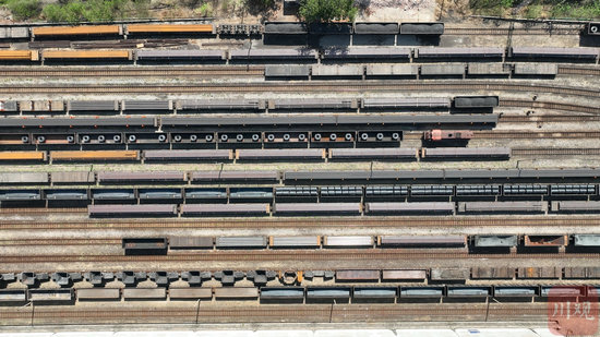 從攀枝花鋼釩有限公司生產(chǎn)下線的鐵路鋼軌,整裝待發(fā)。