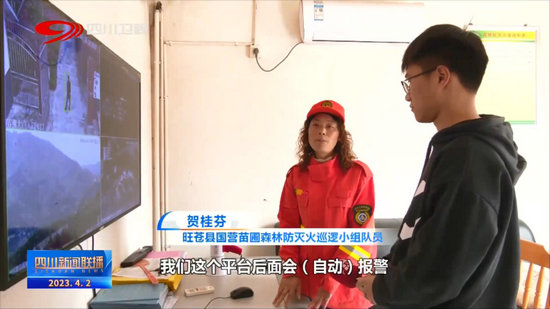 旺蒼縣國營苗圃森林防滅火巡邏小組隊員 賀桂芬:現(xiàn)在這塊是公墓,有特殊情況發(fā)生的話,這兒看得比較清楚。有火的出現(xiàn)的話或者有煙出現(xiàn),我們這個平臺后面會(自動)報警。