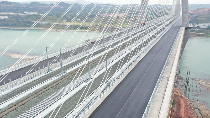 4月9日,成自宜高鐵重點(diǎn)控制性工程——宜賓臨港公鐵兩用長江大橋公路瀝青路面攤鋪完成,大橋附屬工程進(jìn)入收尾階段,預(yù)計將于2023年底建成通車。