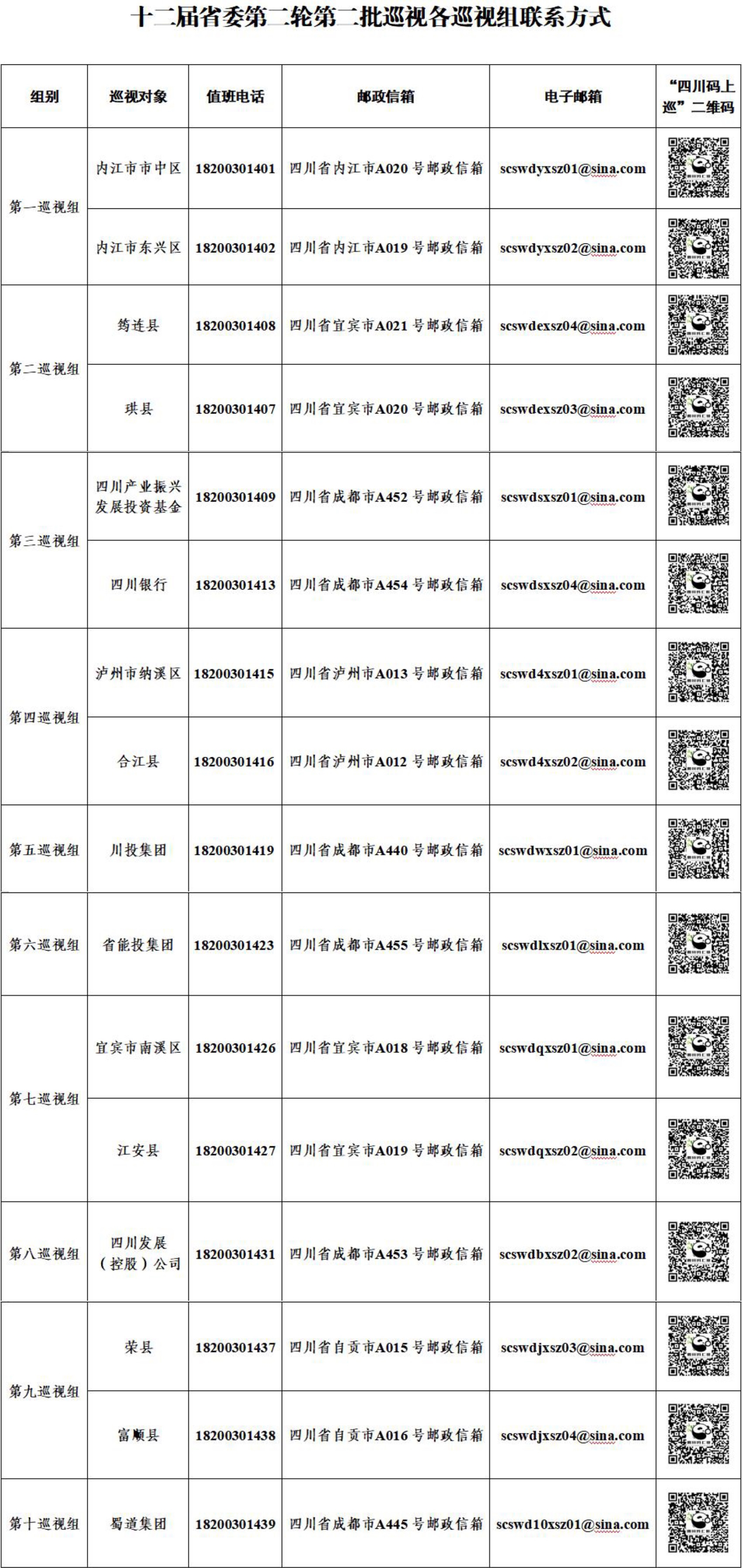 巡視期間,各巡視組設(shè)置了專門值班電話、郵政信箱、電子信箱和“四川碼上巡”信訪反映二維碼。受理電話信訪的時間為早8時至晚8時。巡視組主要受理反映被巡視黨組織領(lǐng)導班子及成員、下一級黨組織主要負責人和重要崗位領(lǐng)導干部問題的來信來電來訪,重點是關(guān)于違反政治紀律、組織紀律、廉潔紀律、群眾紀律、工作紀律和生活紀律等方面問題的反映。其他不屬于巡視受理范圍的信訪問題,將按規(guī)定由被巡視單位和有關(guān)部門認真處理。