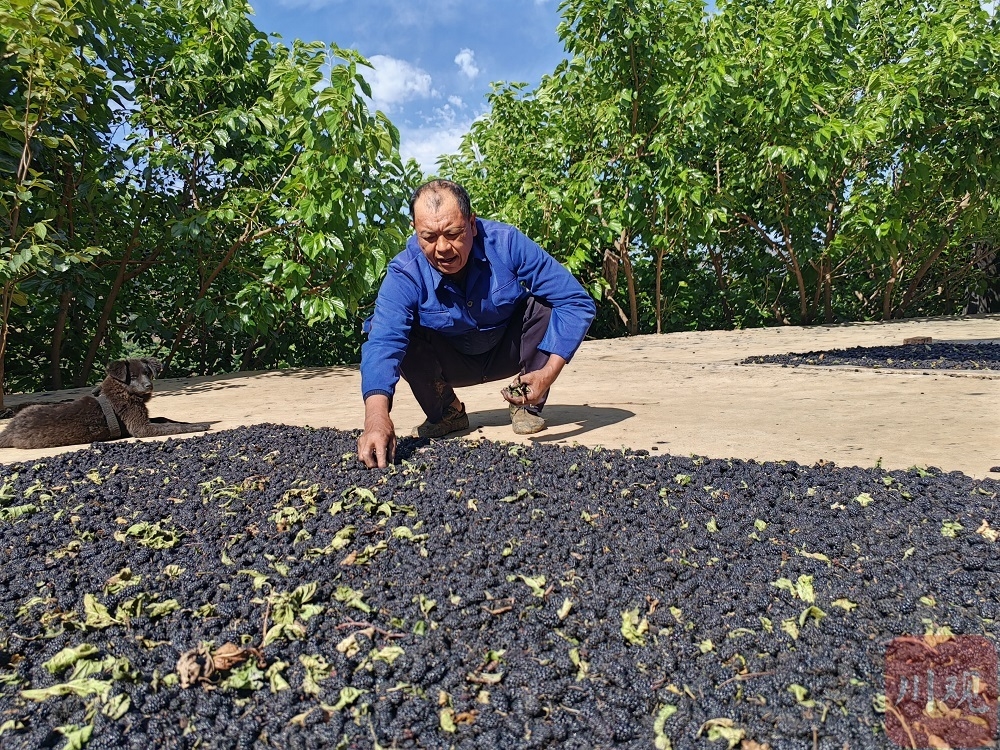 漁門鎮(zhèn)雙龍村傈僳族村民李世忠正在晾曬桑葚。 羅向明 攝