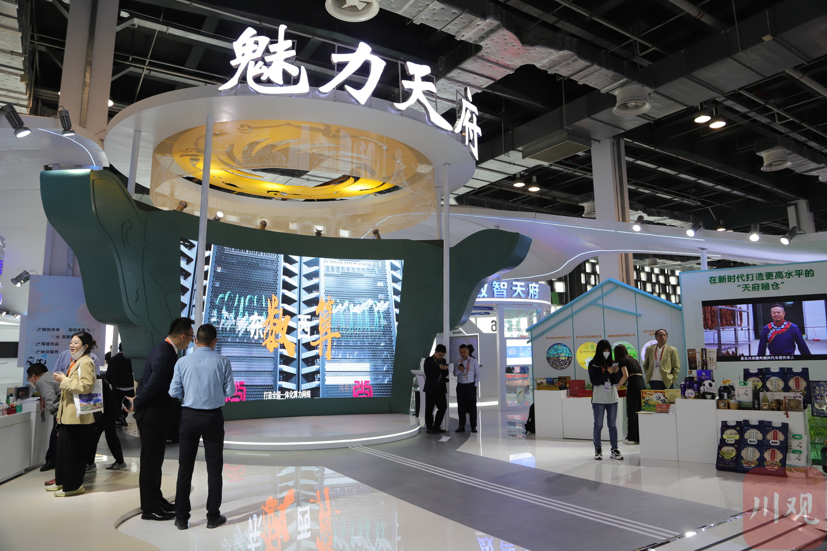 在地方展區(qū),四川展館以“魅力天府”為主題,設(shè)置了序廳、天府糧倉、數(shù)智天府、制創(chuàng)未來、蜀里優(yōu)品、鐘靈毓秀、直播互動七大展區(qū),共有宜賓五糧液集團(tuán)、省旅游投資集團(tuán)、邁克生物等27家企業(yè)參展,重點(diǎn)展示我省在擦亮農(nóng)業(yè)“金字招牌”、推進(jìn)制造業(yè)六大優(yōu)勢產(chǎn)業(yè)提質(zhì)倍增、加快數(shù)字化產(chǎn)業(yè)發(fā)展、打造國際消費(fèi)目的地、建設(shè)巴蜀文化旅游走廊等方面取得的進(jìn)展成效。展區(qū)通過5G、3D等數(shù)字化聲、光、電、影手段,將文化、藝術(shù)和現(xiàn)代科技完美融合,多維度展示四川品牌形象,讓觀眾既可以現(xiàn)場參與特色展臺活動,也可以通過融媒直播間進(jìn)行多維度、沉浸式的“云逛展”。