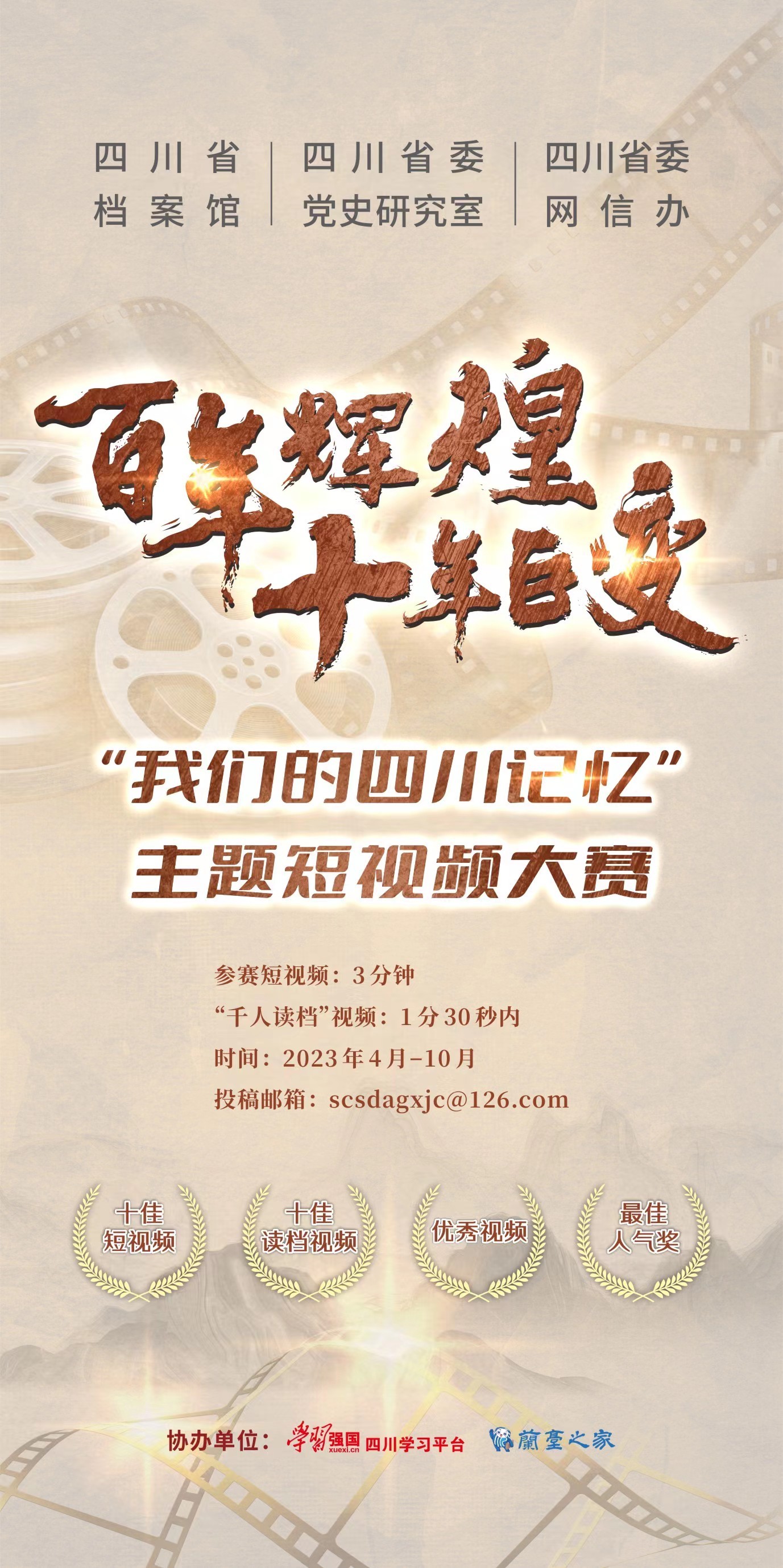 近日,由四川省檔案館、四川省委黨史研究室、四川省委網(wǎng)信辦聯(lián)合舉辦的“百年輝煌·十年巨變”——“我們的四川記憶”主題短視頻大賽正式啟動(dòng),標(biāo)志著“千人讀檔”第二季短視頻大賽通道火熱開啟。
