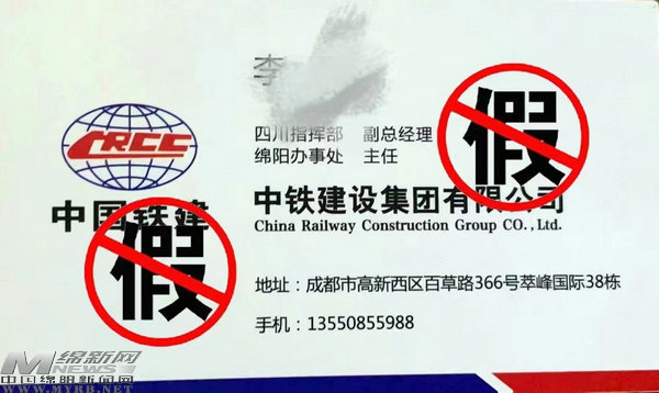 近期,中鐵建設(shè)集團(tuán)有限公司(下稱我公司)發(fā)現(xiàn)不法分子冒充我公司四川指揮部副經(jīng)理、綿陽辦事處主任等職務(wù)在綿陽市違法開展經(jīng)營活動,嚴(yán)重?fù)p害了我公司企業(yè)及品牌形象,為避免廣大業(yè)界同仁上當(dāng)受騙,本公司鄭重聲明如下:我公司未在綿陽設(shè)置辦事處,我公司亦不會以項目部或個人名義對外簽訂任何合同。如有任何單位或個人以我公司、我公司項目部或我公司員工名義對外收取費用或者轉(zhuǎn)包的,請勿相信,并立即向公安機關(guān)報案。