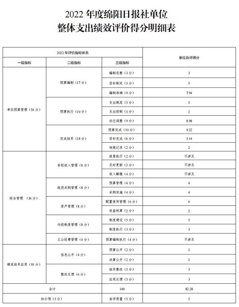 附件:2022年度綿陽日報社單位整體支出績效評價得分明細表
