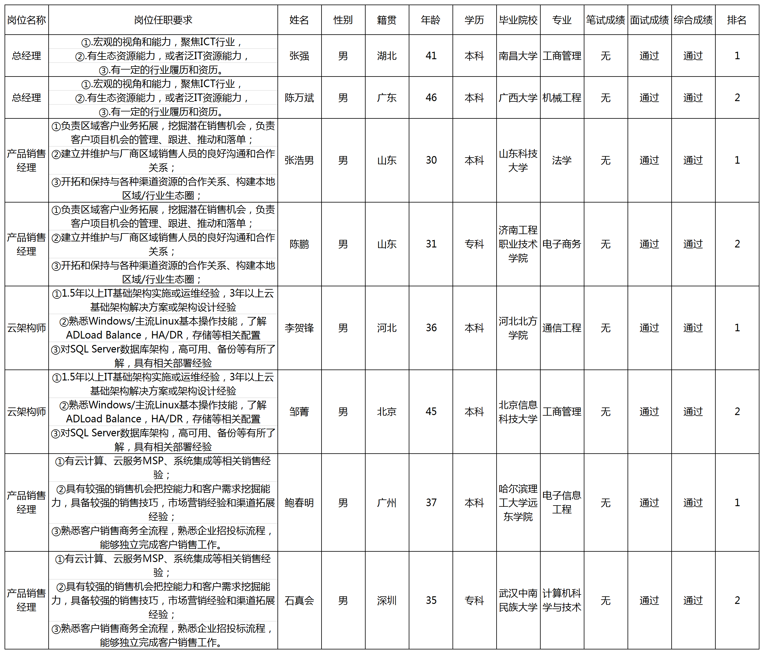 根據(jù)四川長虹佳華信息產(chǎn)品有限責任公司發(fā)布的招聘公告及招聘相關(guān)規(guī)定,經(jīng)筆試、面試等程序,現(xiàn)將筆試(面試)成績予以公示。