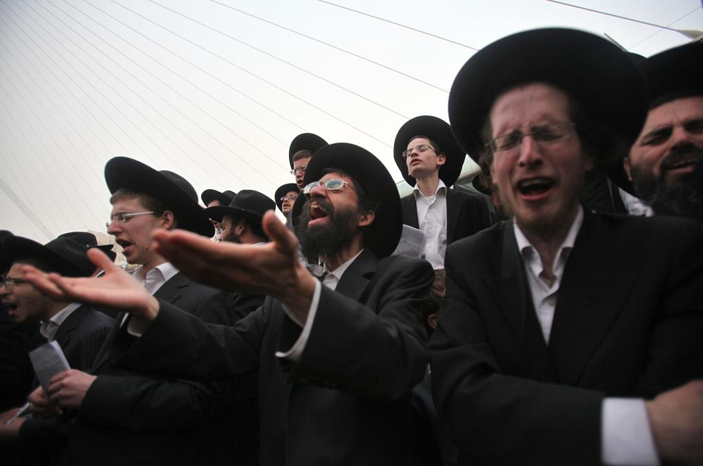 2014年3月2日,正統(tǒng)猶太教徒在耶路撒冷參加大規(guī)模集會。當(dāng)日,30多萬名以色列正統(tǒng)猶太教徒在耶路撒冷舉行大規(guī)模集會,反對政府推行的旨在要求猶太教學(xué)生服兵役的計劃。新華社發(fā)(吉爾·科恩·馬根攝)