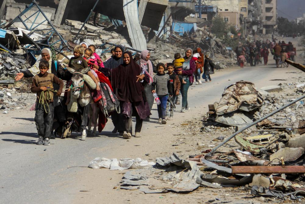 11月5日,巴勒斯坦民眾從加沙地帶北部拜特拉希亞鎮(zhèn)逃到加沙城。據(jù)巴勒斯坦通訊社5日報道,以色列軍隊(duì)4日夜間至5日凌晨轟炸加沙地帶北部一棟房屋,造成至少25人死亡,其中包括13名兒童。新華社發(fā)(馬哈茂德·扎基攝)