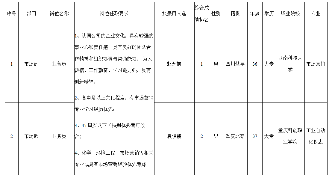 根據(jù)格潤(rùn)中天公司發(fā)布的招聘公告及招聘相關(guān)規(guī)定,經(jīng)面試、體檢等程序,擬錄用趙永前、袁俊鵬同志到格潤(rùn)中天市場(chǎng)部工作,現(xiàn)予以公示,具體情況如下: