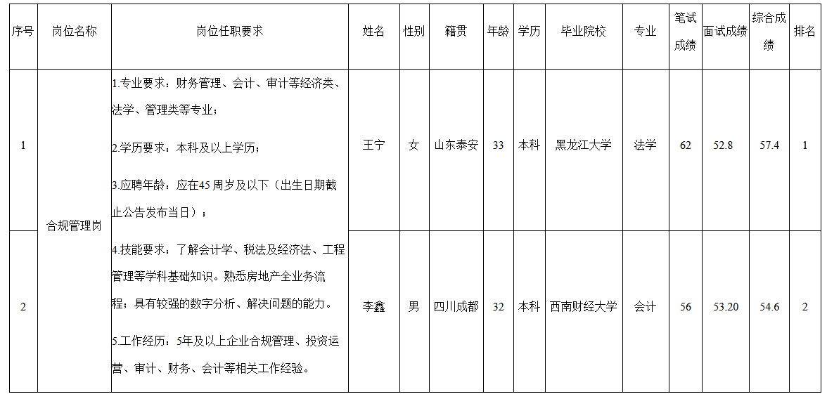 注:本次招聘中應聘人員筆試、面試綜合得分均<60分,未達到招聘要求。