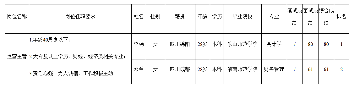 根據(jù)四川愛(ài)聯(lián)科技股份有限公司發(fā)布的招聘公告及招聘相關(guān)規(guī)定,經(jīng)筆試、面試等程序,現(xiàn)將筆試(面試)成績(jī)予以公示。