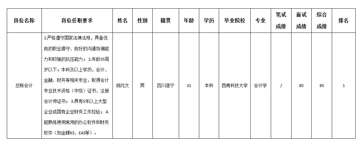 根據(jù)四川九州視訊科技有限責(zé)任公司發(fā)布的招聘公告及招聘相關(guān)規(guī)定,經(jīng)筆試、面試等程序,現(xiàn)將筆試(面試)成績予以公示。