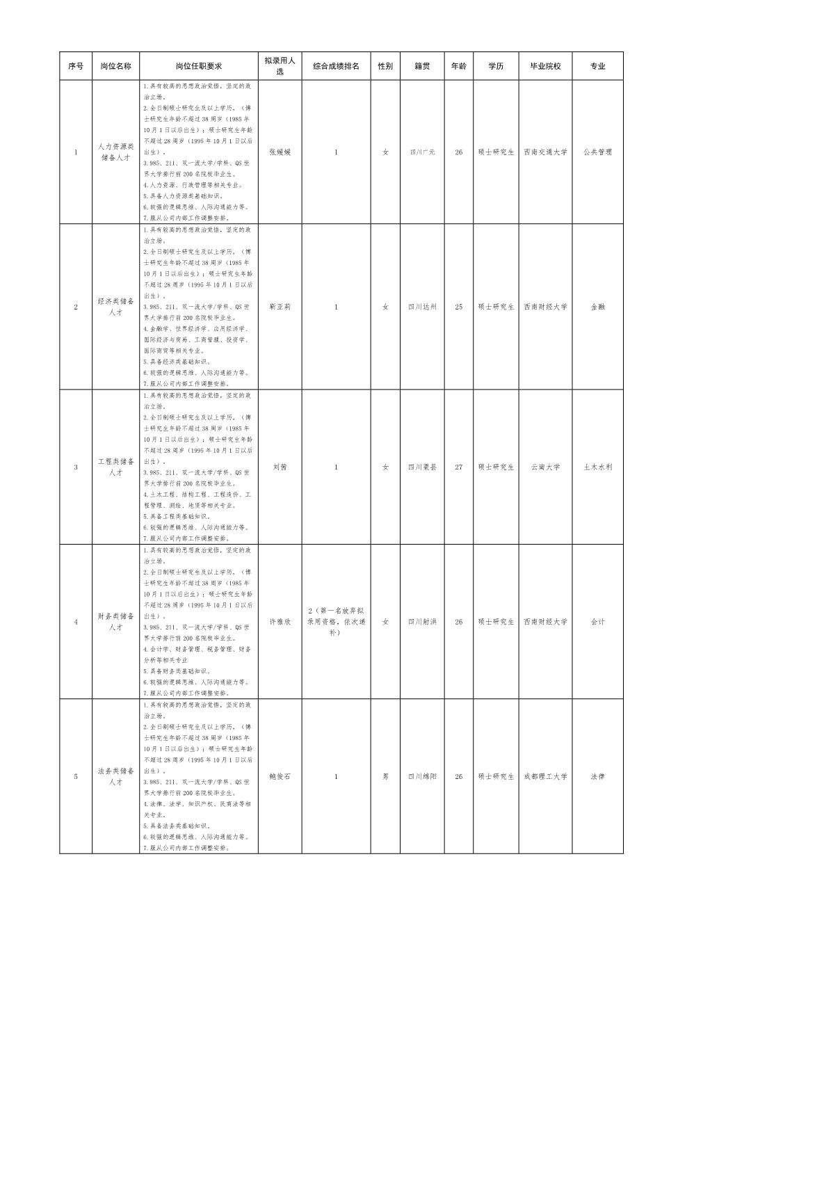 根據(jù)集團(tuán)2023年秋季“獵才行動(dòng)”招聘公告及招聘相關(guān)規(guī)定,經(jīng)筆試、面試、考察、體檢等程序,擬錄用張媛媛等五名同志到科發(fā)集團(tuán)工作,現(xiàn)予以公示,具體情況如下:
