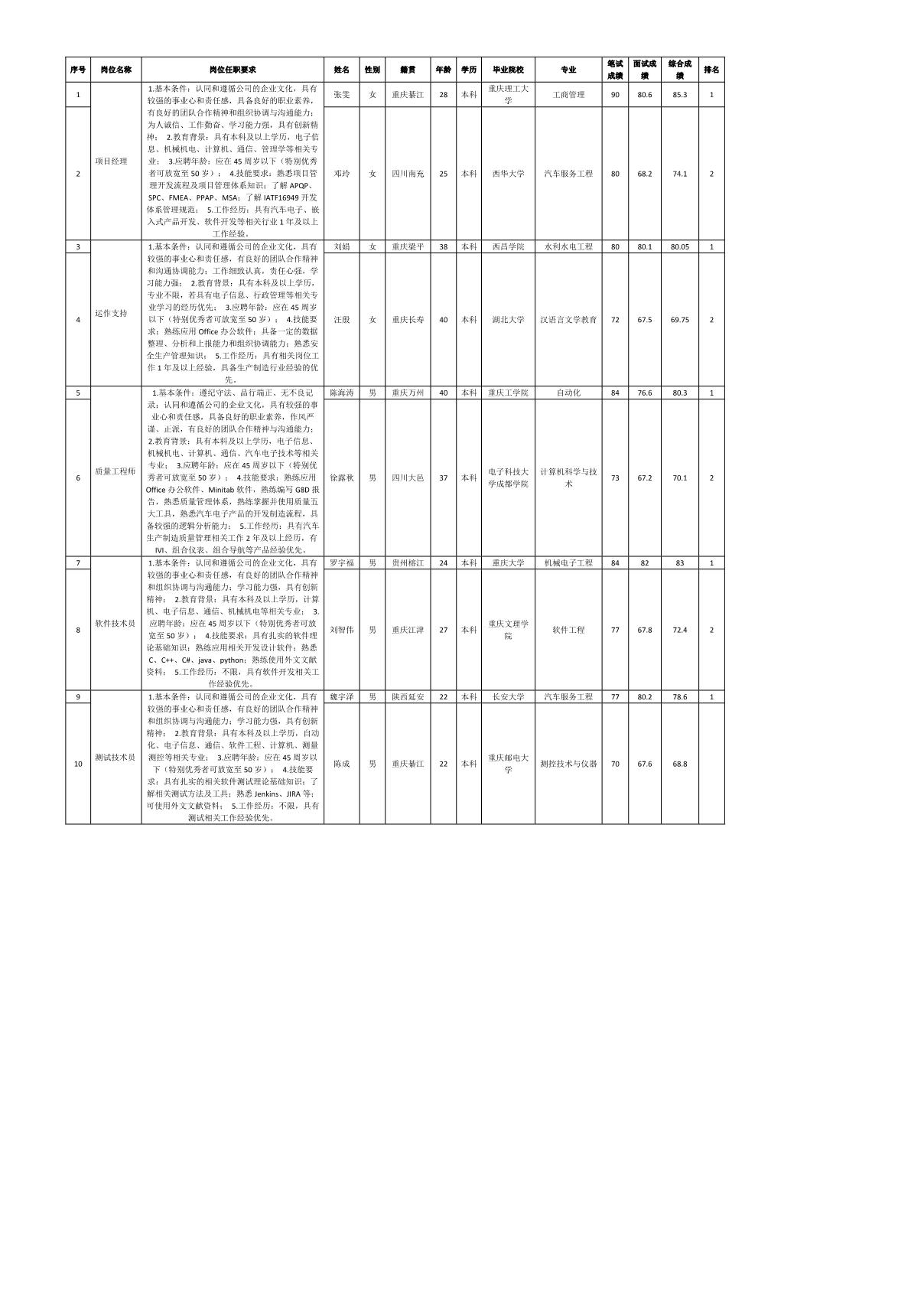 根據(jù)重慶九洲隆瓴科技有限公司發(fā)布的招聘公告及招聘相關(guān)規(guī)定,經(jīng)筆試、面試等程序,現(xiàn)將筆試(面試)成績(jī)予以公示。
