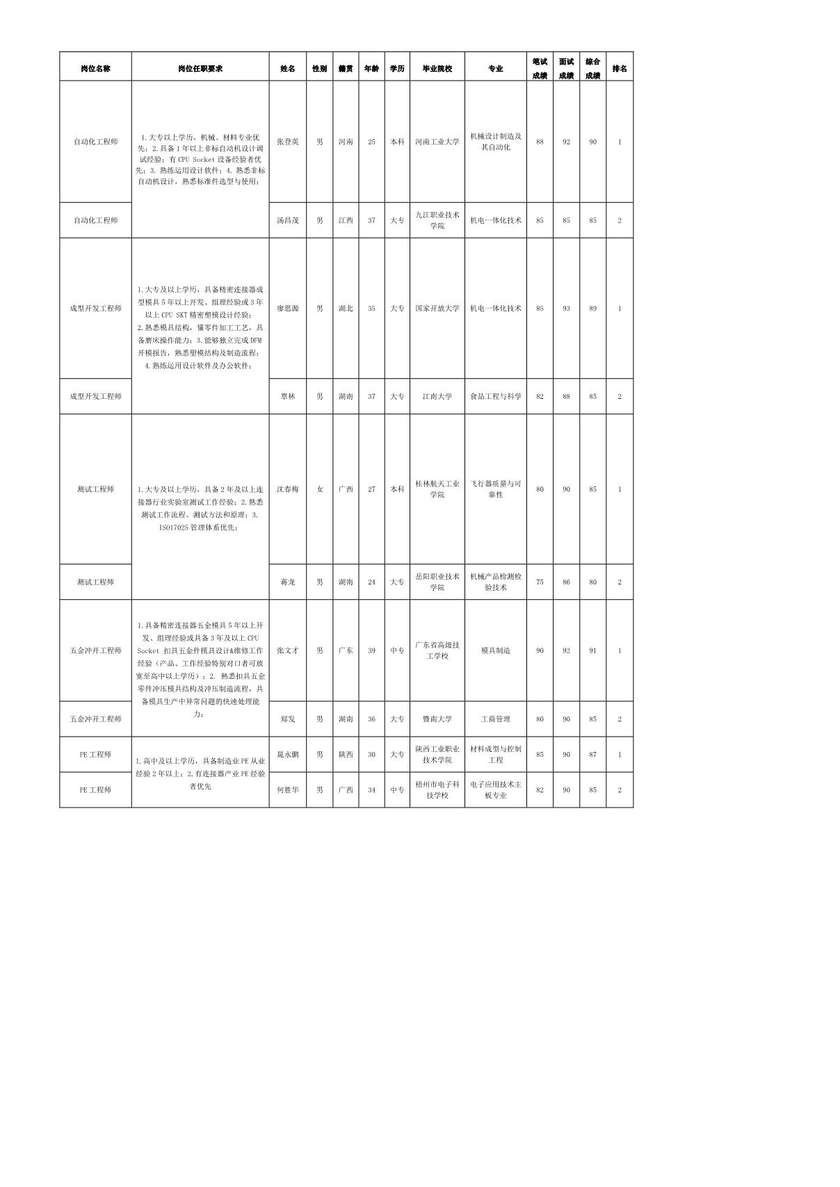 根據(jù)四川華芯鼎泰精密電子有限公司發(fā)布的招聘公告及招聘相關(guān)規(guī)定,經(jīng)筆試、面試等程序,現(xiàn)將筆試(面試)成績(jī)予以公示。