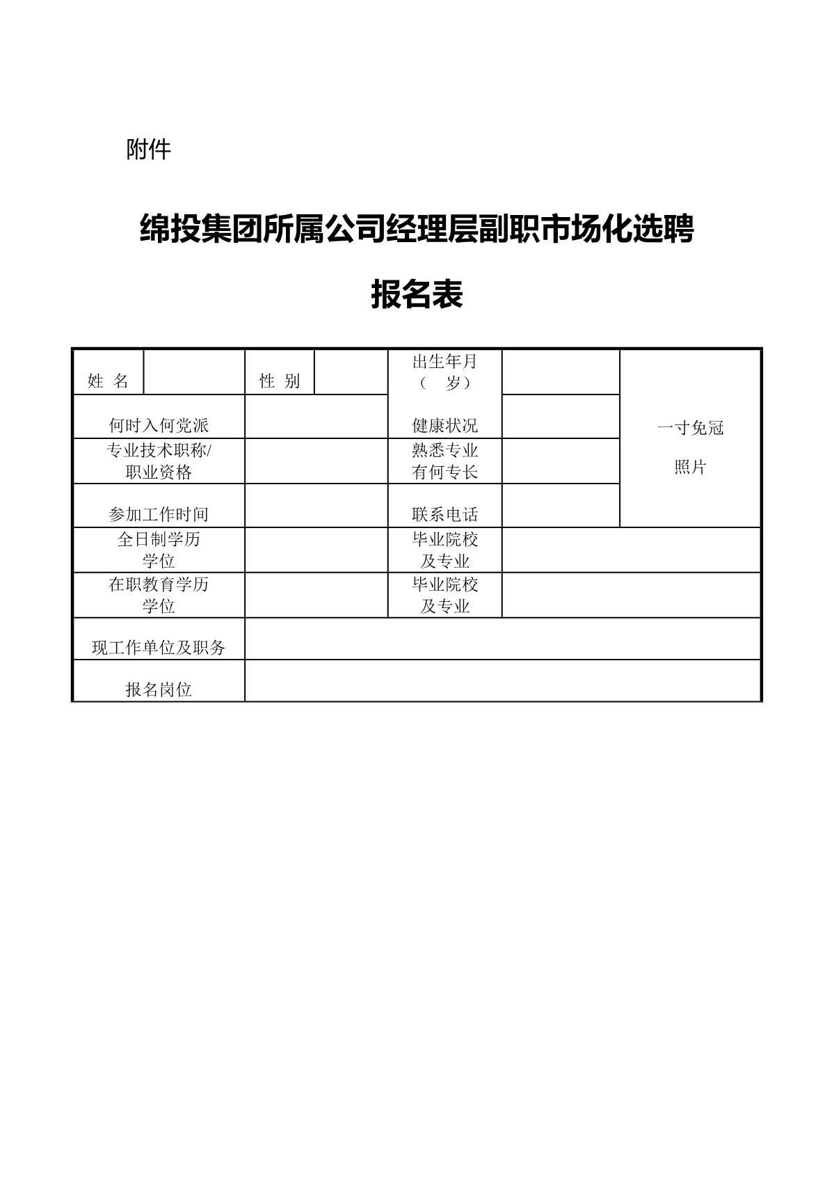附件:綿投集團(tuán)所屬公司經(jīng)理層副職市場化選聘報名表