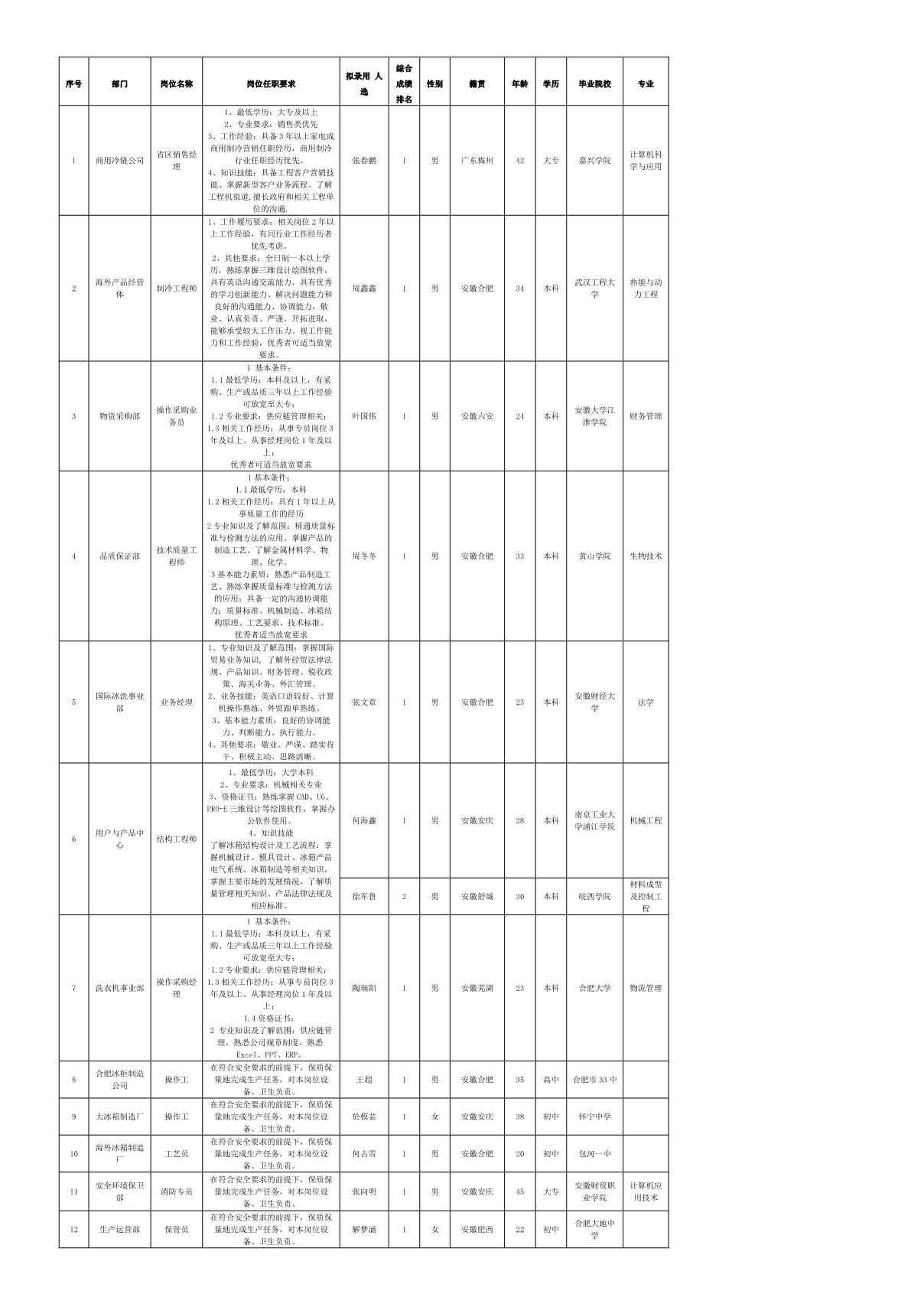 根據(jù)長虹美菱股份有限公司發(fā)布的招聘公告及招聘相關規(guī)定,經(jīng)面試、體檢等程序,擬錄用張春鵬同志到商用冷鏈公司等部門工作,現(xiàn)予以公示,具體情況如下: