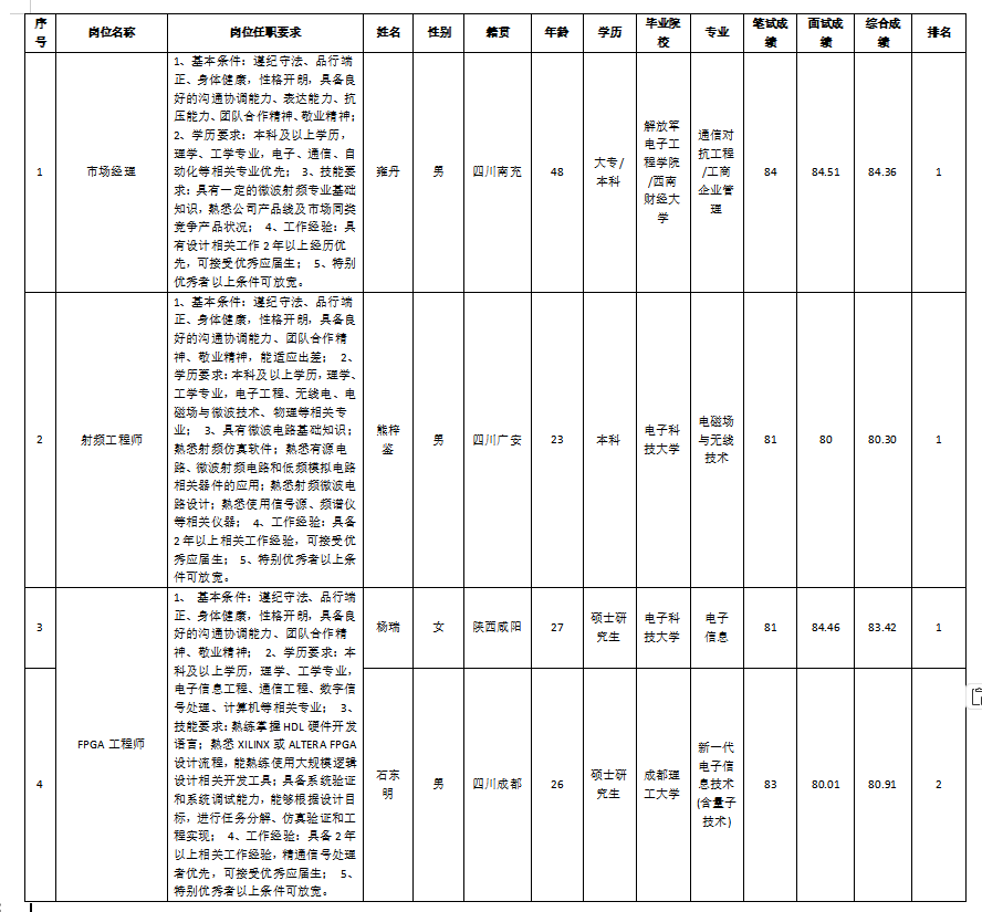 根據(jù)成都九州迪飛科技有限責(zé)任公司發(fā)布的招聘公告及招聘相關(guān)規(guī)定,經(jīng)筆試、面試等程序,現(xiàn)將筆試(面試)成績(jī)予以公示。