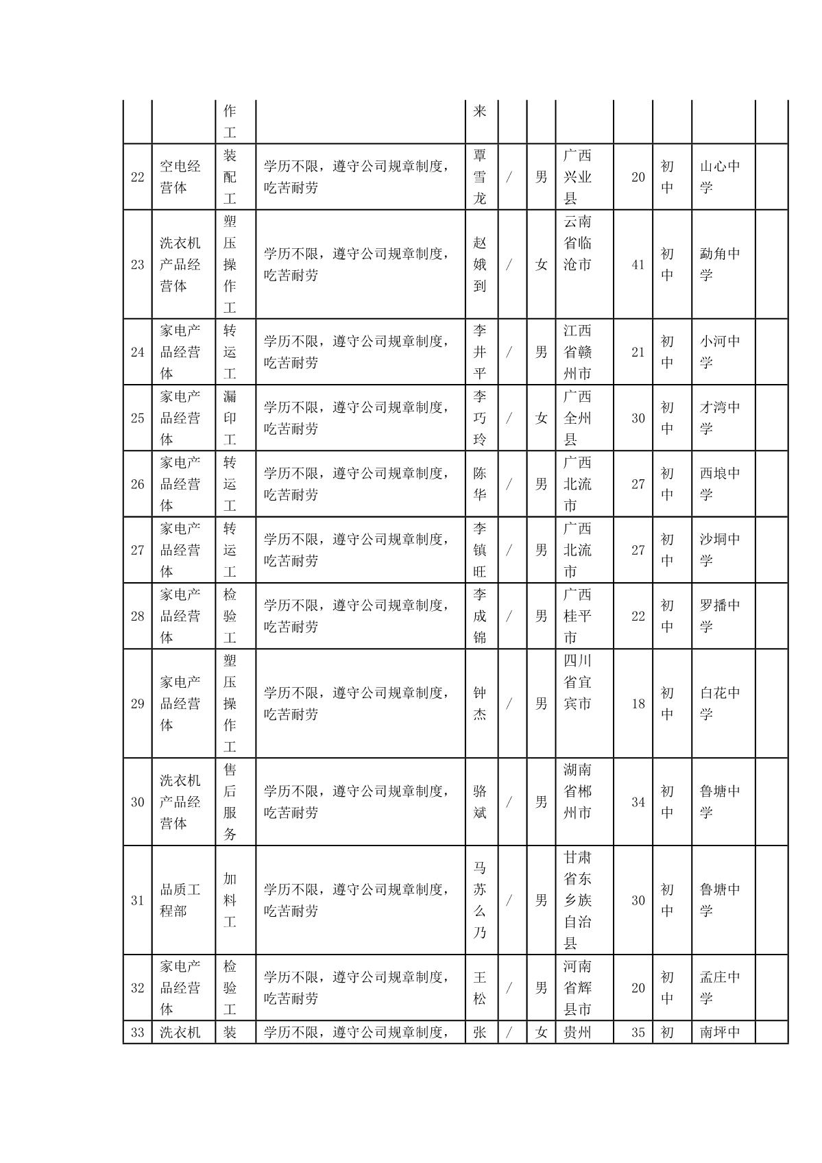 根據(jù)四川長虹模塑科技有限公司發(fā)布的招聘公告及招聘相關(guān)規(guī)定,經(jīng)筆試、面試、考察、體檢等程序,擬錄用胡迪菲等同志到模塑公司工作,現(xiàn)予以公示,具體情況如下: