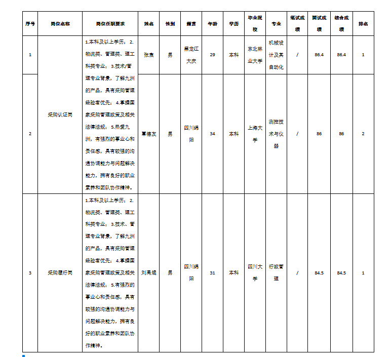 根據(jù)四川迪佳通電子有限公司發(fā)布的招聘公告及招聘相關(guān)規(guī)定,經(jīng)筆試、面試等程序,現(xiàn)將筆試(面試)成績(jī)予以公示。