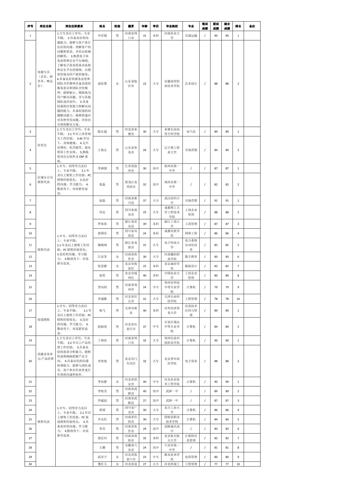 根據(jù)北京九州科瑞科技有限公司發(fā)布的招聘公告及招聘相關規(guī)定,經(jīng)筆試、面試等程序,現(xiàn)將筆試(面試)成績予以公示。