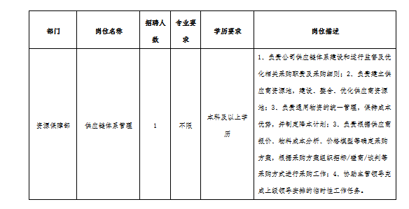 4.工作經(jīng)歷:具有3年及以上采購或供應鏈管理工作經(jīng)驗。
