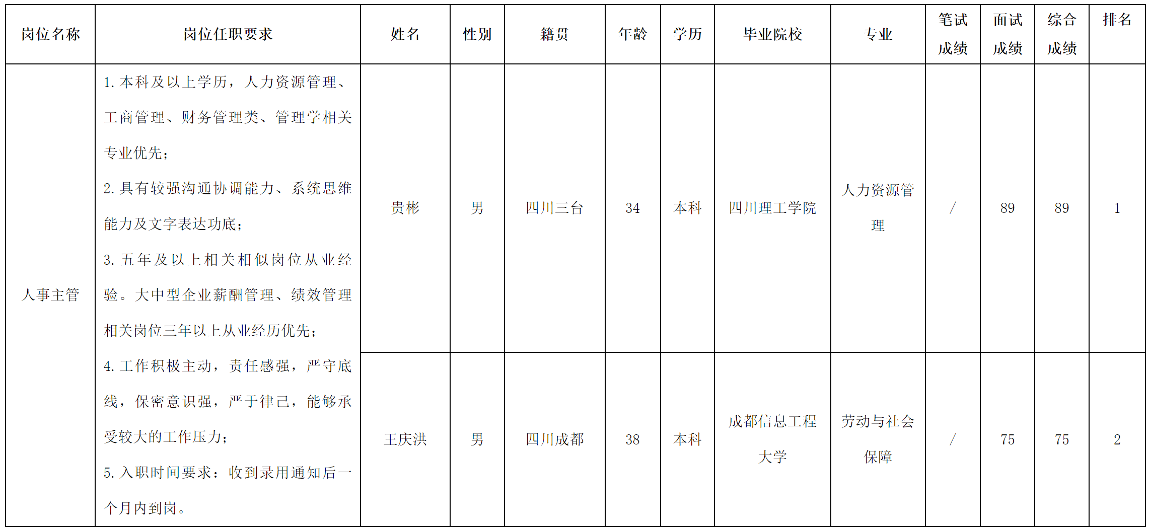 根據(jù)四川虹信軟件股份有限公司發(fā)布的招聘公告及招聘相關(guān)規(guī)定,經(jīng)筆試、面試等程序,現(xiàn)將筆試(面試)成績(jī)予以公示。