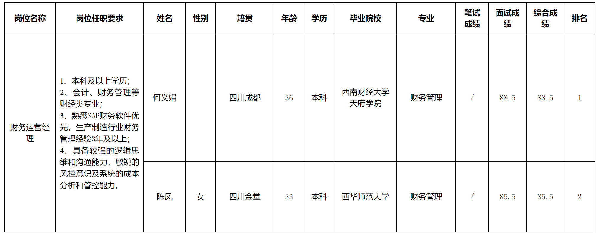 根據(jù)四川長虹潤天能源科技有限公司發(fā)布的招聘公告及招聘相關規(guī)定,經面試程序,現(xiàn)將面試成績予以公示。
