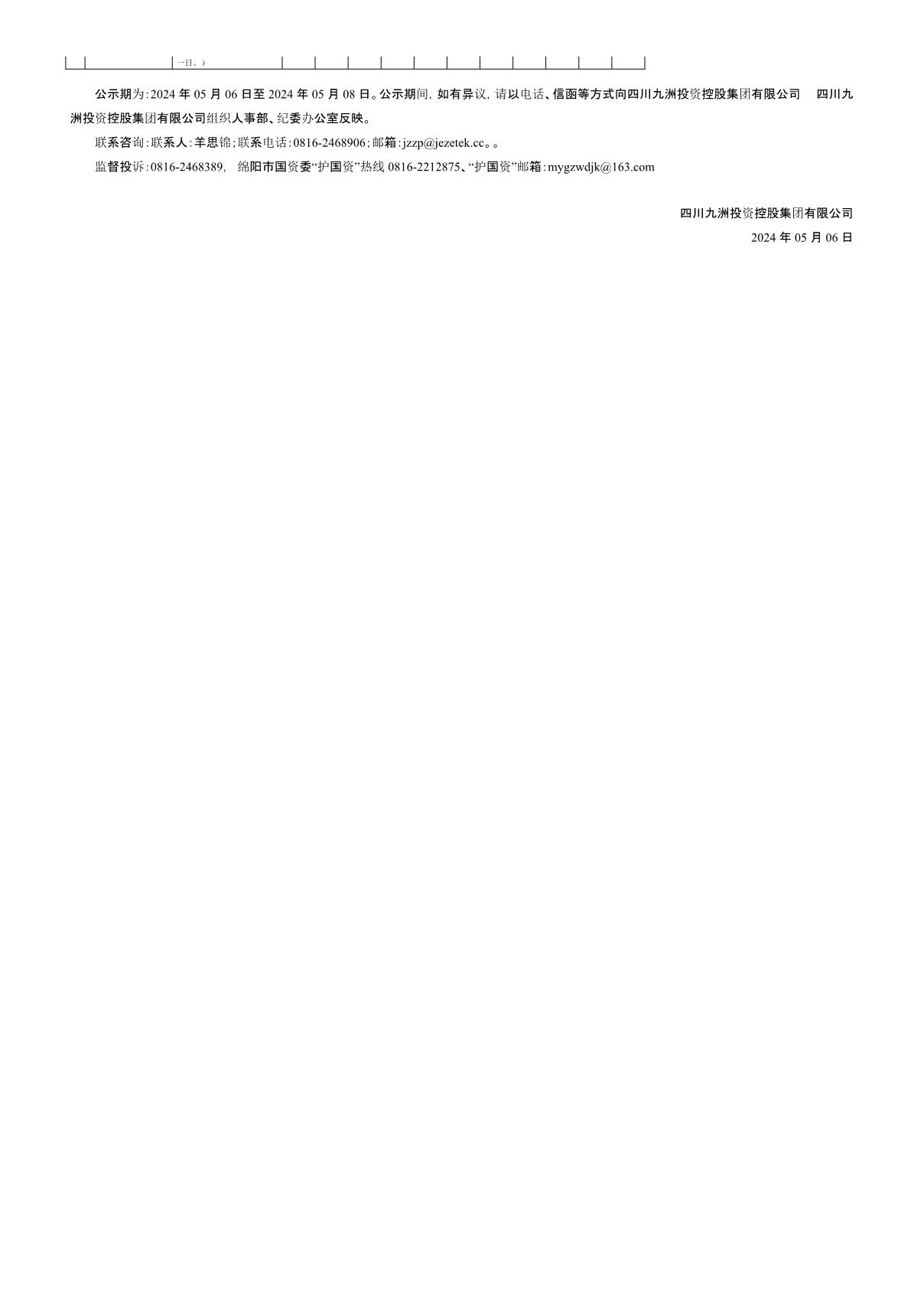 四川九洲投資控股集團有限公司關于招聘中層管理人員測試成績的公示