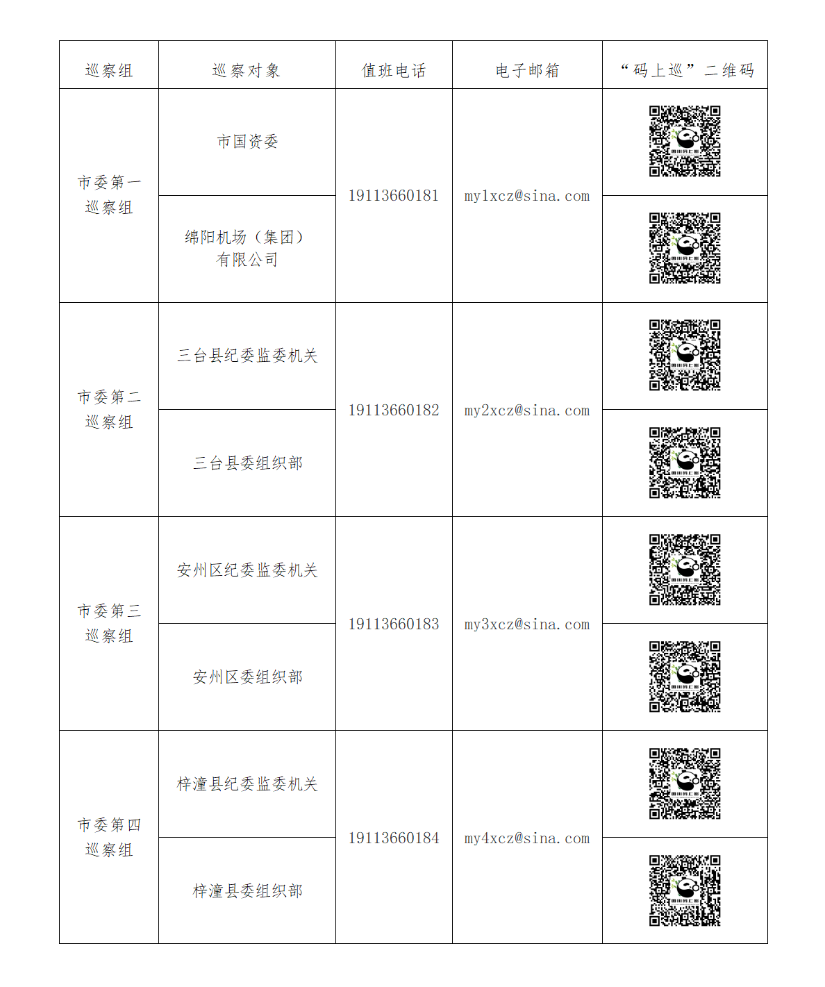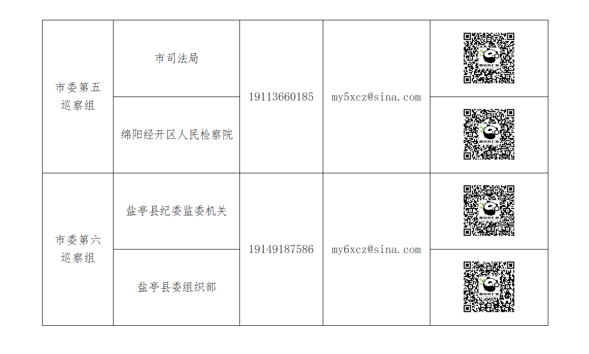 現(xiàn)將八屆市委第六輪第二批巡察各巡察組分組名單、聯(lián)系方式及“四川碼上巡”二維碼公告如下,歡迎廣大干部群眾如實反映有關(guān)情況和問題。(記者 謝艷)
