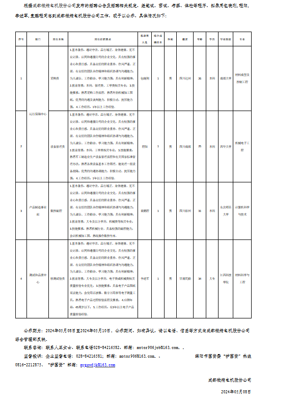 成都微精電機(jī)股份公司關(guān)于招聘采購員等崗位擬錄用人員的公示
