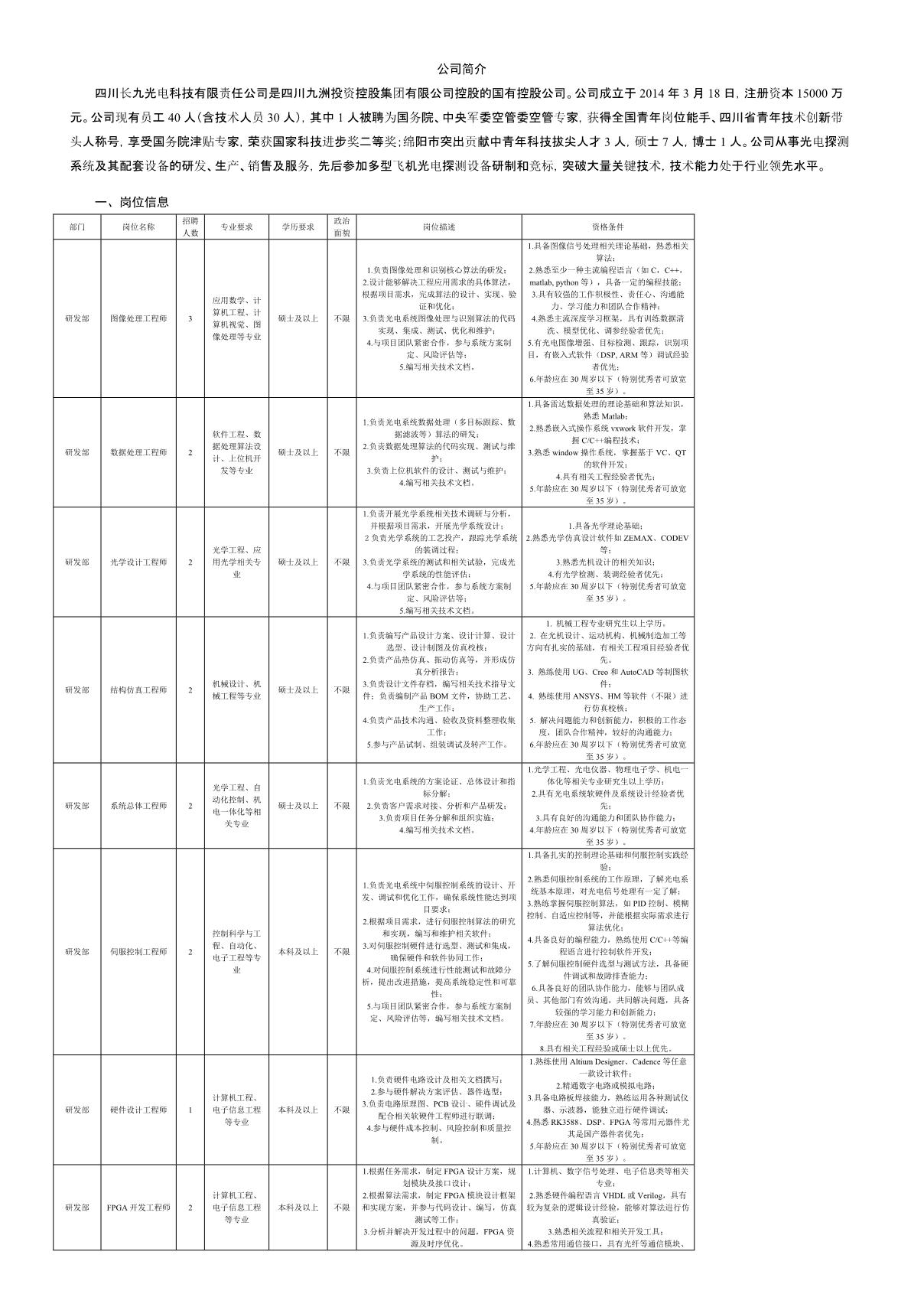 四川長(zhǎng)九光電科技有限責(zé)任公司關(guān)于招聘圖像處理工程師等崗位的公告