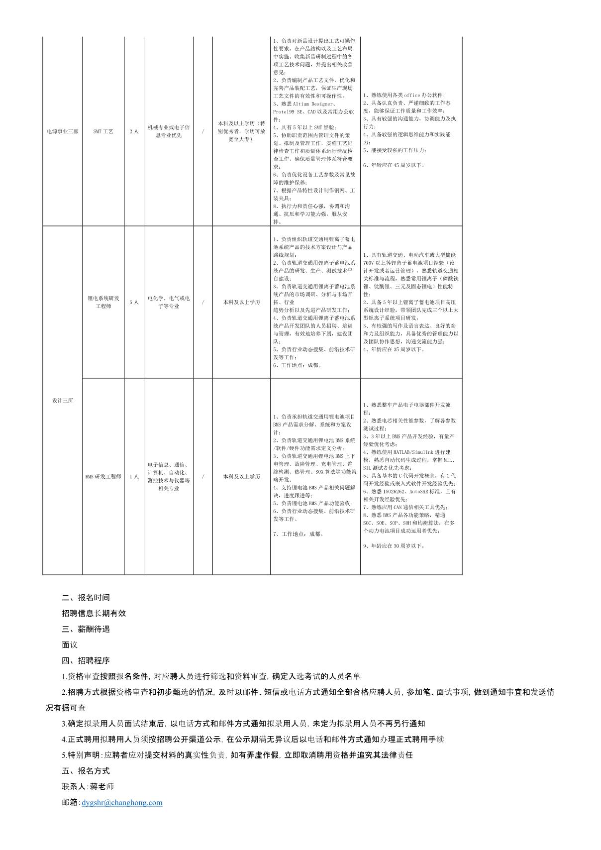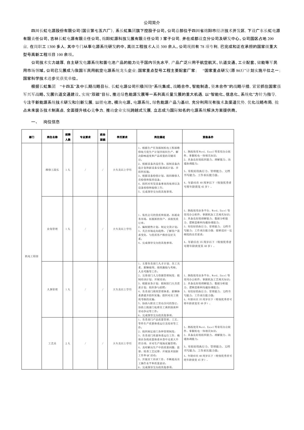 四川長虹電源股份有限公司關(guān)于招聘維修工段長等崗位的公告