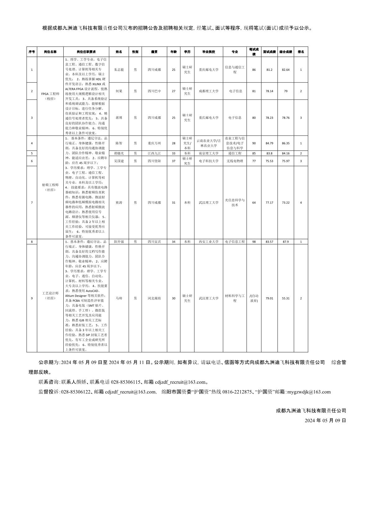 成都九洲迪飛科技有限責(zé)任公司關(guān)于招聘FPGA工程師等崗位測試成績的公示