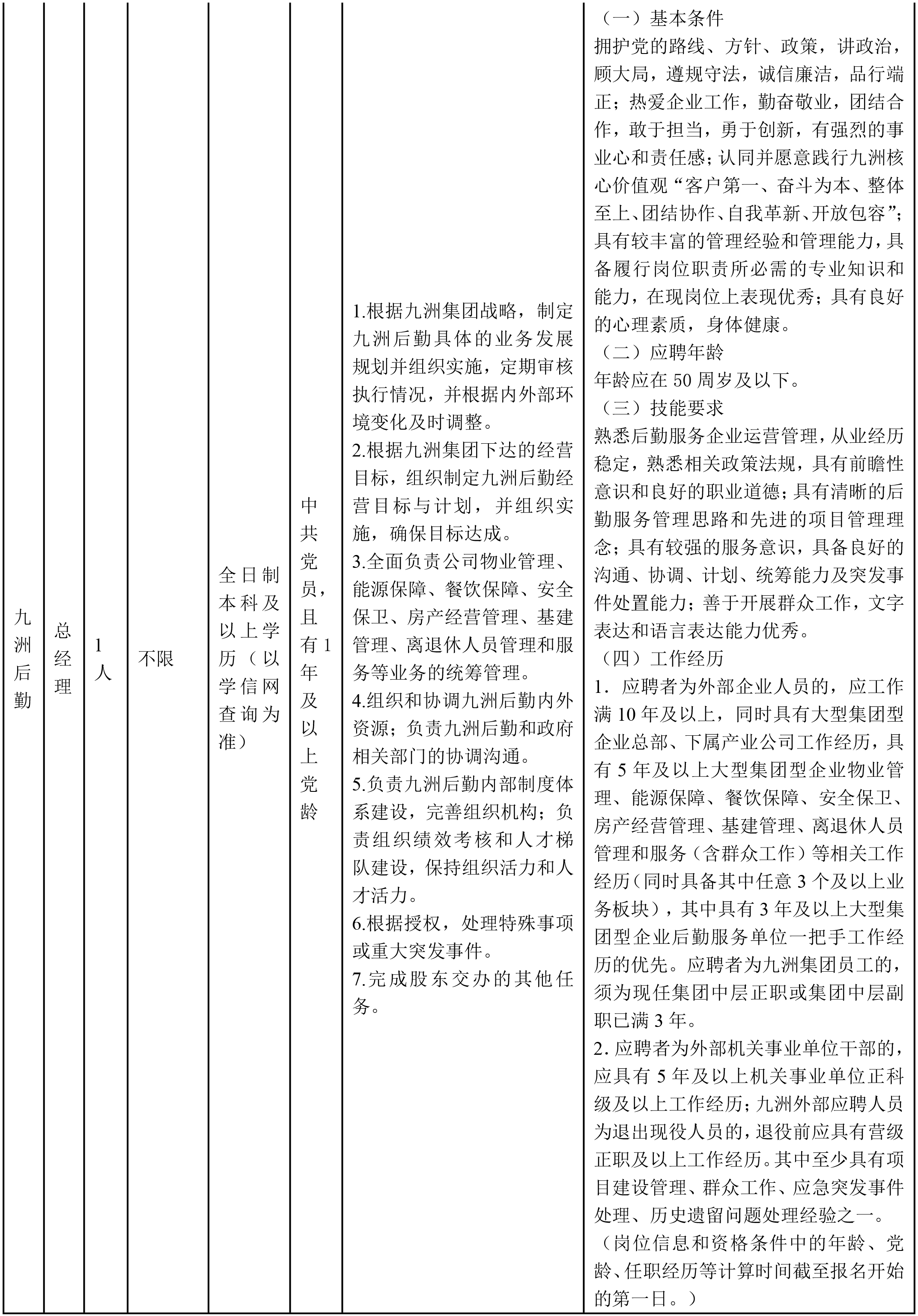 結(jié)合四川九洲投資控股集團(tuán)有限公司法務(wù)審計(jì)部部長(zhǎng)、四川九洲后勤服務(wù)有限責(zé)任公司總經(jīng)理崗位前期報(bào)名情況和招聘工作實(shí)際,現(xiàn)將崗位報(bào)名截止時(shí)間延長(zhǎng)至2024年6月20日,具體公告如下。