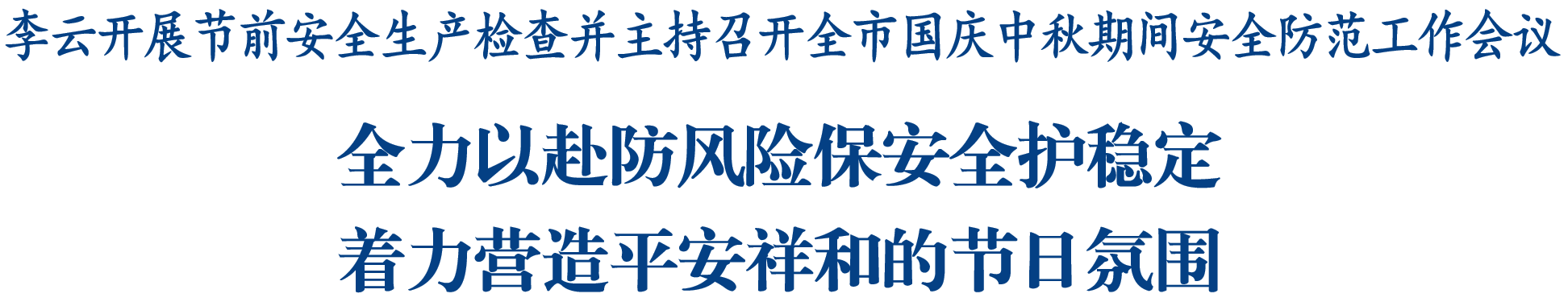 9月30日,市委副書記、市長李云前往城區(qū)開展節(jié)前安全生產(chǎn)檢查并主持召開全市國慶中秋期間安全防范工作會議,強調(diào)要深入學習貫徹習近平總書記關于安全生產(chǎn)的重要論述,認真落實省安委會2025年第四次全體會議暨全省安全生產(chǎn)、森林草原防滅火工作視頻會議精神,全力以赴防風險、保安全、護穩(wěn)定,著力營造平安祥和的節(jié)日氛圍?! ?/p>