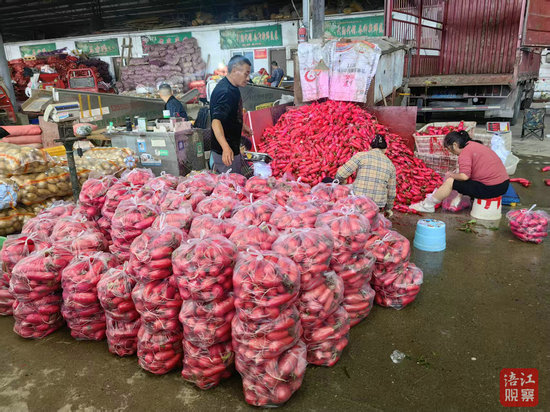 高水農(nóng)副產(chǎn)品批發(fā)市場(chǎng)商戶李老板正忙著收款,他告訴記者,為應(yīng)對(duì)雙節(jié)需求,1個(gè)月前便提前備貨,確保各類蔬菜新鮮且不脫銷斷供。“最近所有菜都比較好賣,銷售量和平時(shí)相比,提升了50%,采購商來我們這里采購的也比較多,銷售量比平時(shí)也有所增長。”李老板說。