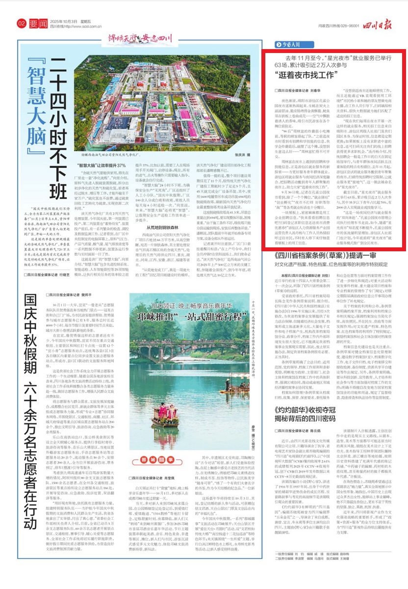10月3日出版的《四川日報》刊發(fā)文章《去年11月至今,“星光夜市”就業(yè)服務已舉行63場,累計吸引近2萬人次參與 “逛著夜市找工作”》,關注綿陽游仙區(qū)將夜間經(jīng)濟與就業(yè)服務深度融合,打造“星光夜市”服務模式,深受群眾歡迎。全文如下: