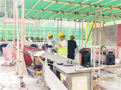 游仙區(qū)開元中學(xué)實(shí)施高中強(qiáng)基教育(教學(xué)綜合樓)項(xiàng)目現(xiàn)場,工人正在進(jìn)行鋼筋加工工作。