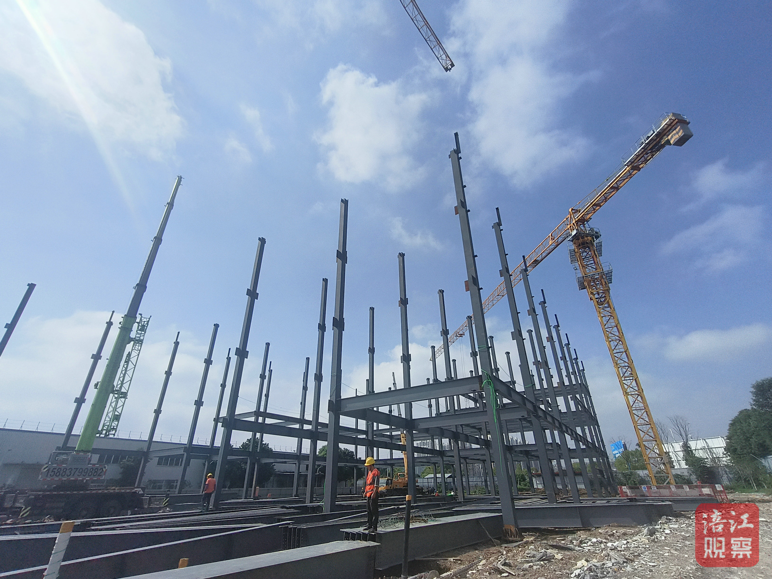 “目前,我們正在進行鋼構(gòu)的安裝,鋼柱和鋼梁的安裝都在同步推進,鋼梁部分已經(jīng)施工到三四層了。”施工現(xiàn)場負(fù)責(zé)人廖鋒指著正在“生長”的廠房向記者介紹,“右邊的綜合辦公樓主體樓板已經(jīng)完成,二樓以上準(zhǔn)備砌磚,底樓即將打墊層,我們正全力沖刺,確保今年12月底能夠如期完工。”