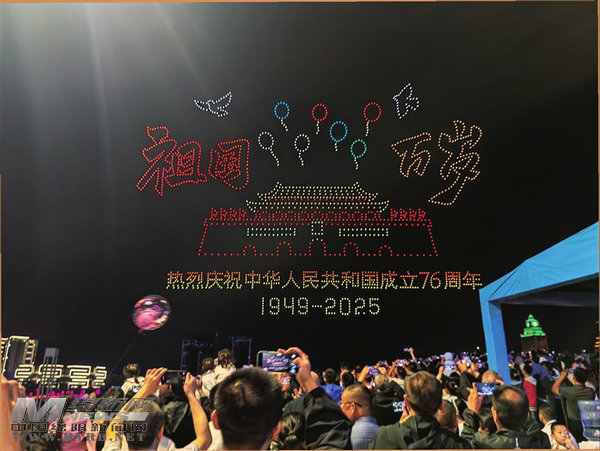 無人機(jī)+文藝匯演+美食市集,不僅讓在場群眾享受到了一場豐富的視覺盛宴,也將節(jié)日的氛圍感直接拉滿。“我們祖國越來越強(qiáng)大,這樣的慶?;顒犹幸饬x了。”市民王女士感嘆,在國慶假期,帶著孩子看傳統(tǒng)文化與現(xiàn)代科技交融,是最好的愛國教育。