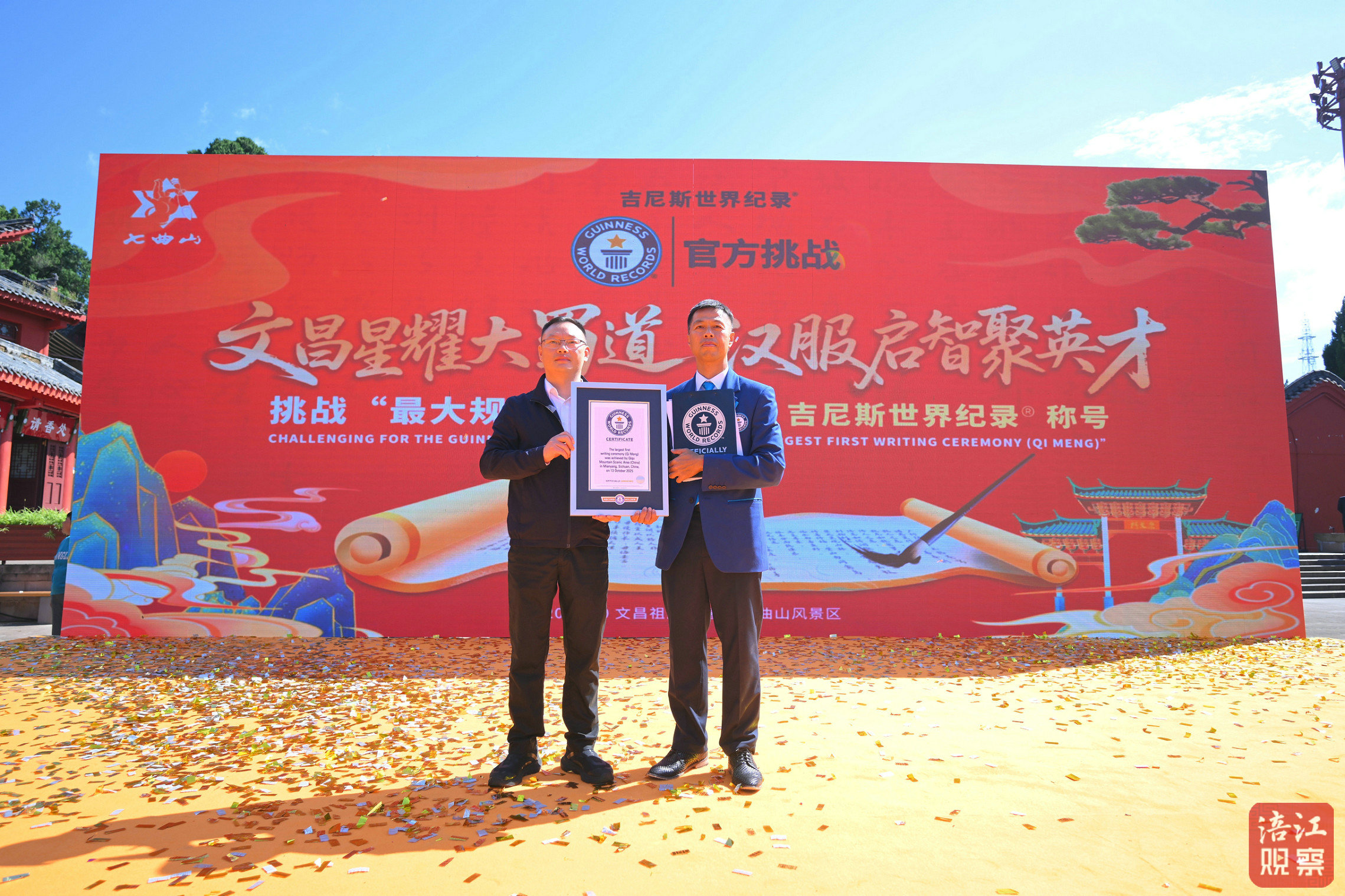 “挑戰(zhàn)成功!”吉尼斯世界紀(jì)錄認證官現(xiàn)場宣布,“最大規(guī)模的啟智儀式”吉尼斯世界紀(jì)錄™稱號誕生,現(xiàn)場一片沸騰。