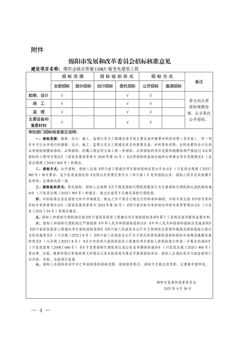 綿陽市發(fā)展和改革委員會關于綿陽涪城石橋鋪110kV輸變電增容工程項目核準的批復