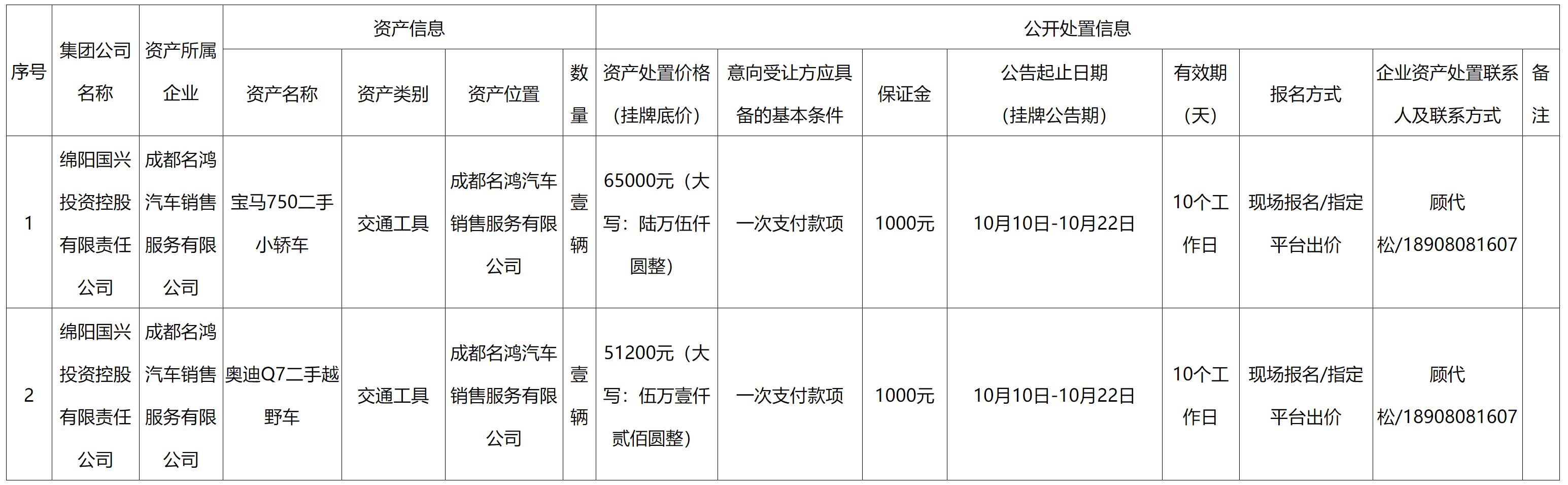 綿陽(yáng)國(guó)興投資控股有限責(zé)任公司資產(chǎn)處置公告