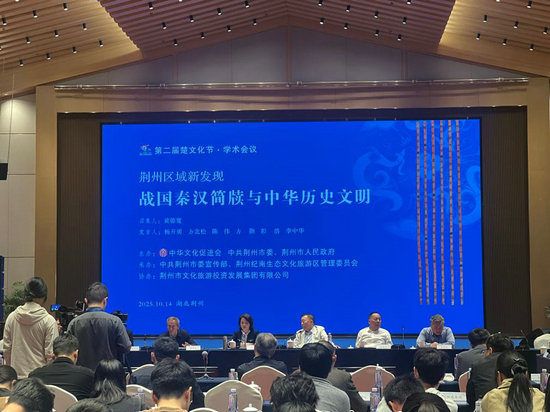 “荊州區(qū)域新發(fā)現(xiàn)戰(zhàn)國秦漢簡牘與中華歷史文明”學(xué)術(shù)會(huì)議10月14日在荊州舉行。新華社記者喻佩 攝