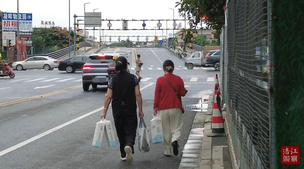 “我們就只有走到圍擋旁邊,挨著彩鋼皮走。”王大爺說。
