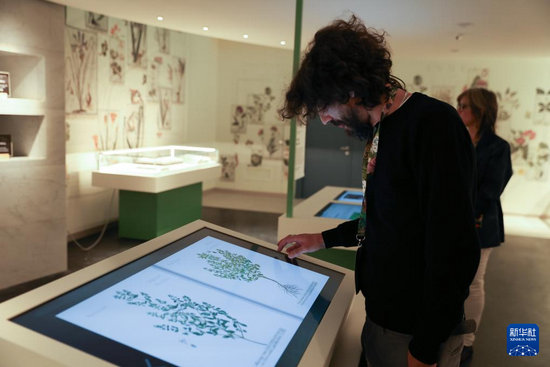 10月16日,在意大利羅馬,嘉賓在聯(lián)合國糧食農(nóng)業(yè)博物館觀看植物圖鑒。
