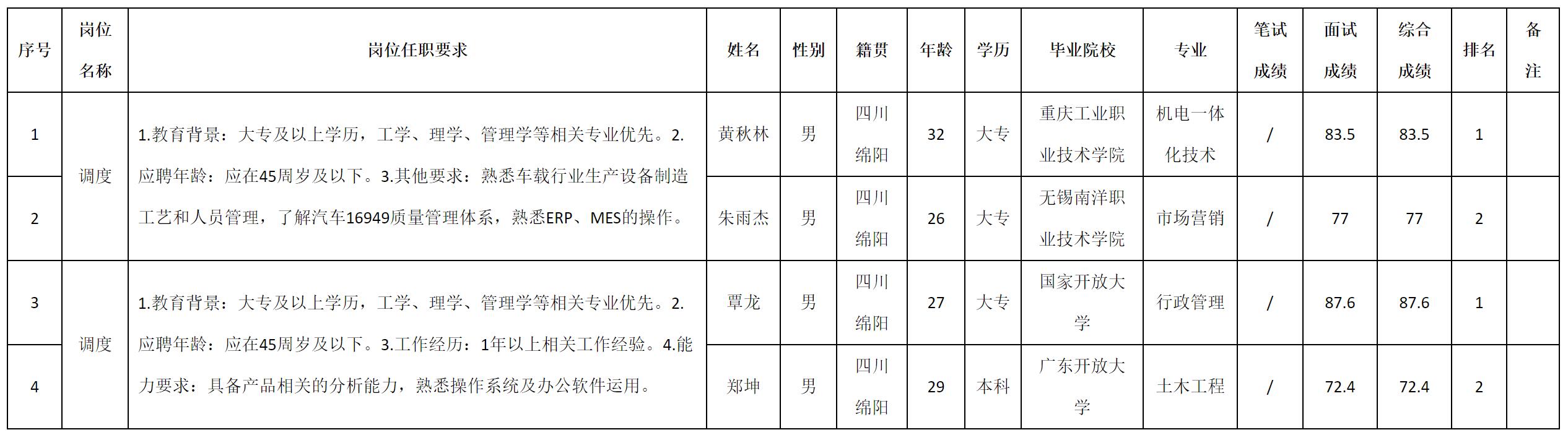 四川九州電子科技股份有限公司關(guān)于招聘調(diào)度崗測試成績的公示